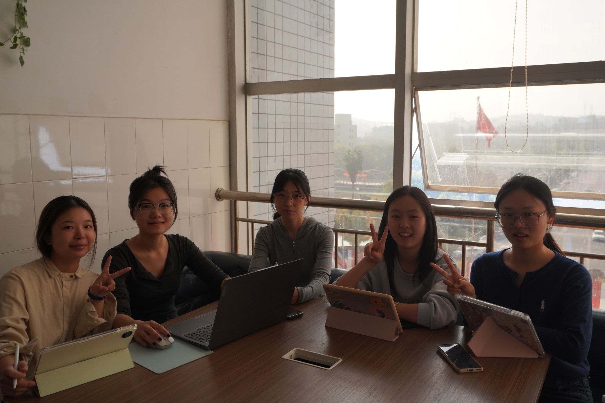 下午五点半结束时的合影留念,小组成员斗志全无。加油!磨完稿子明天又是新的一天。