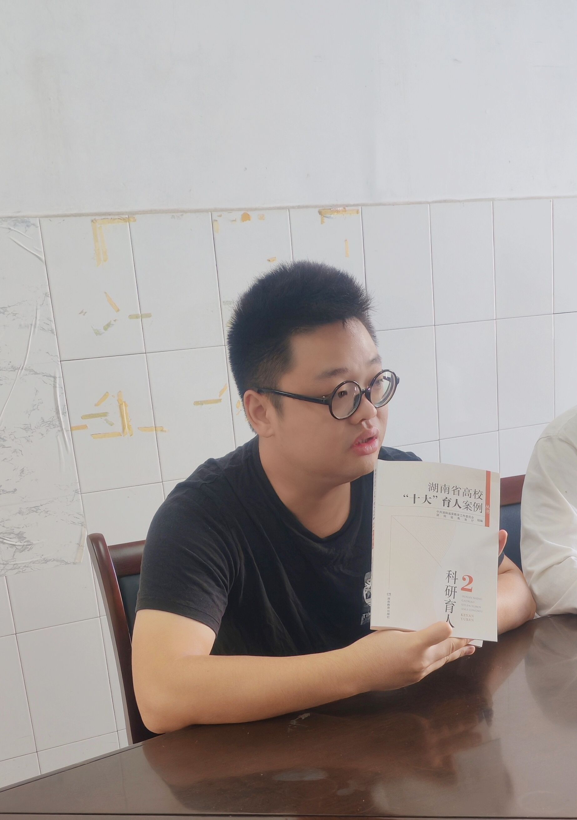 活动一开始, 吴书越老师向大家分享了他对《湖南省高校“十大”育人案例》中的科研育人的感受。他表示,书中南华大学通过数学建模大赛育人的案例,让他联想到物电学子在国家级、省级老员工电子设计大赛,物理竞赛等多项比赛中获得的优异成绩。他认为这些竞赛的经历对员工未来升学与就业具有重要意义,通过学科竞赛及相关科研活动可以提高员工的综合能力,提高理工科员工的人才培养质量。