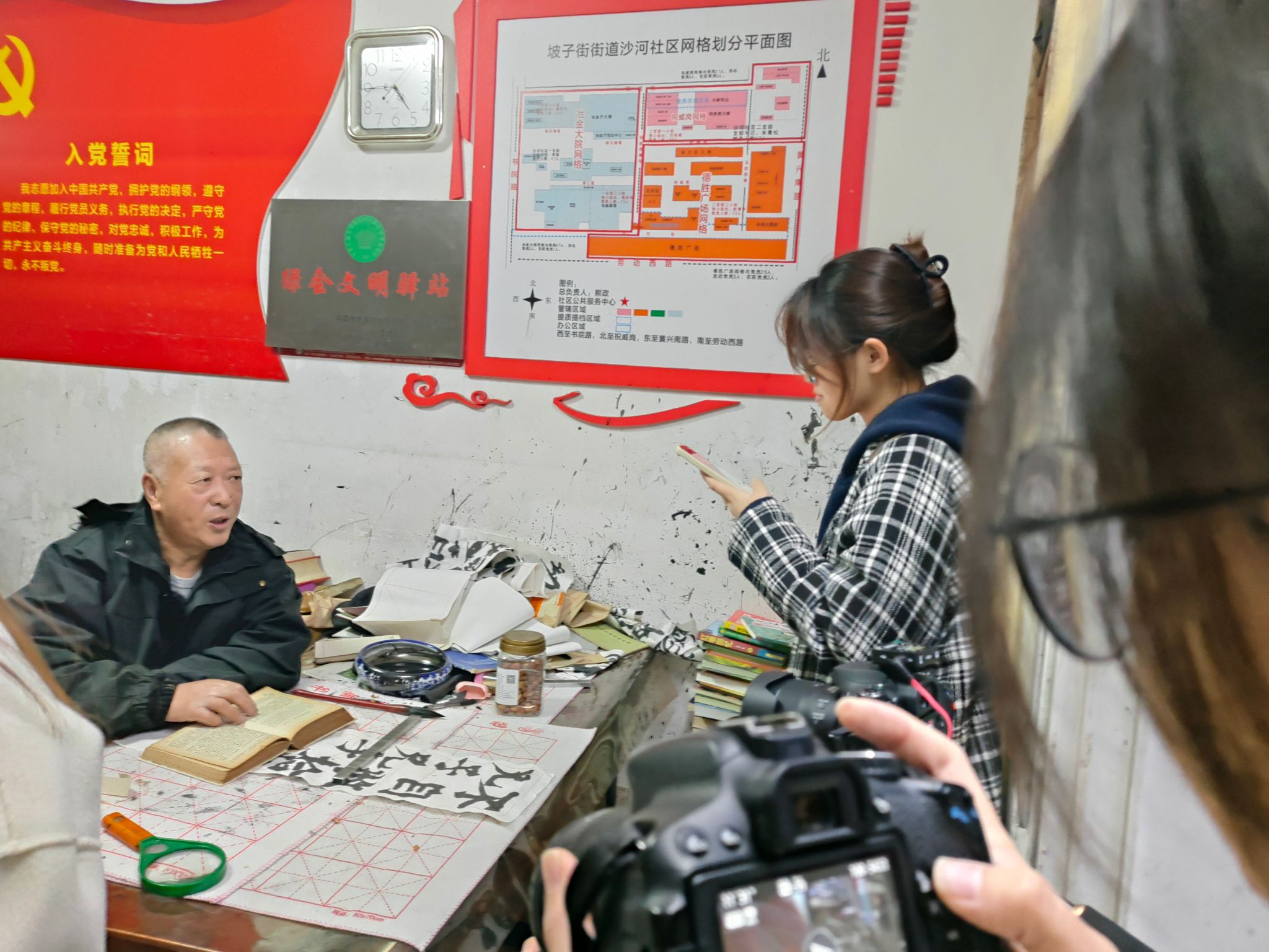 老刘给李娜小组成员讲解古书