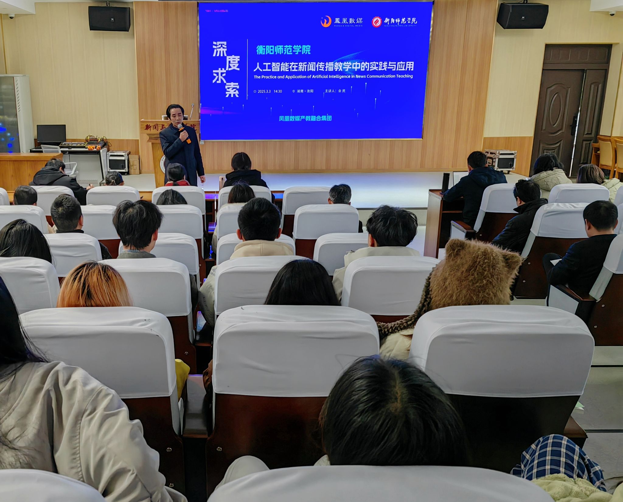 2025年3月3日下午,凤凰数媒产教集团资深项目负责人余民应邀在文A107举办了一场主题为“人工智能在新闻传播教学中的实践与应用”的专题讲座,tyc33455cc太阳集团全体教师和2022级部分员工到场倾听。