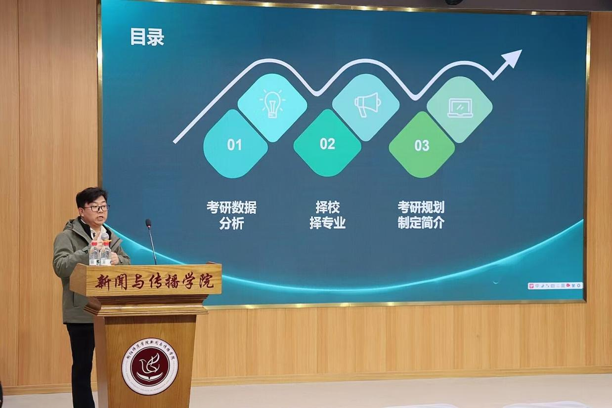 邓经理则从专业前景出发,剖析了新闻与传播专业考研的机遇与挑战,同时也探讨了跨专业考研情况,激励同学们明确目标,积极备考,勇敢追梦。