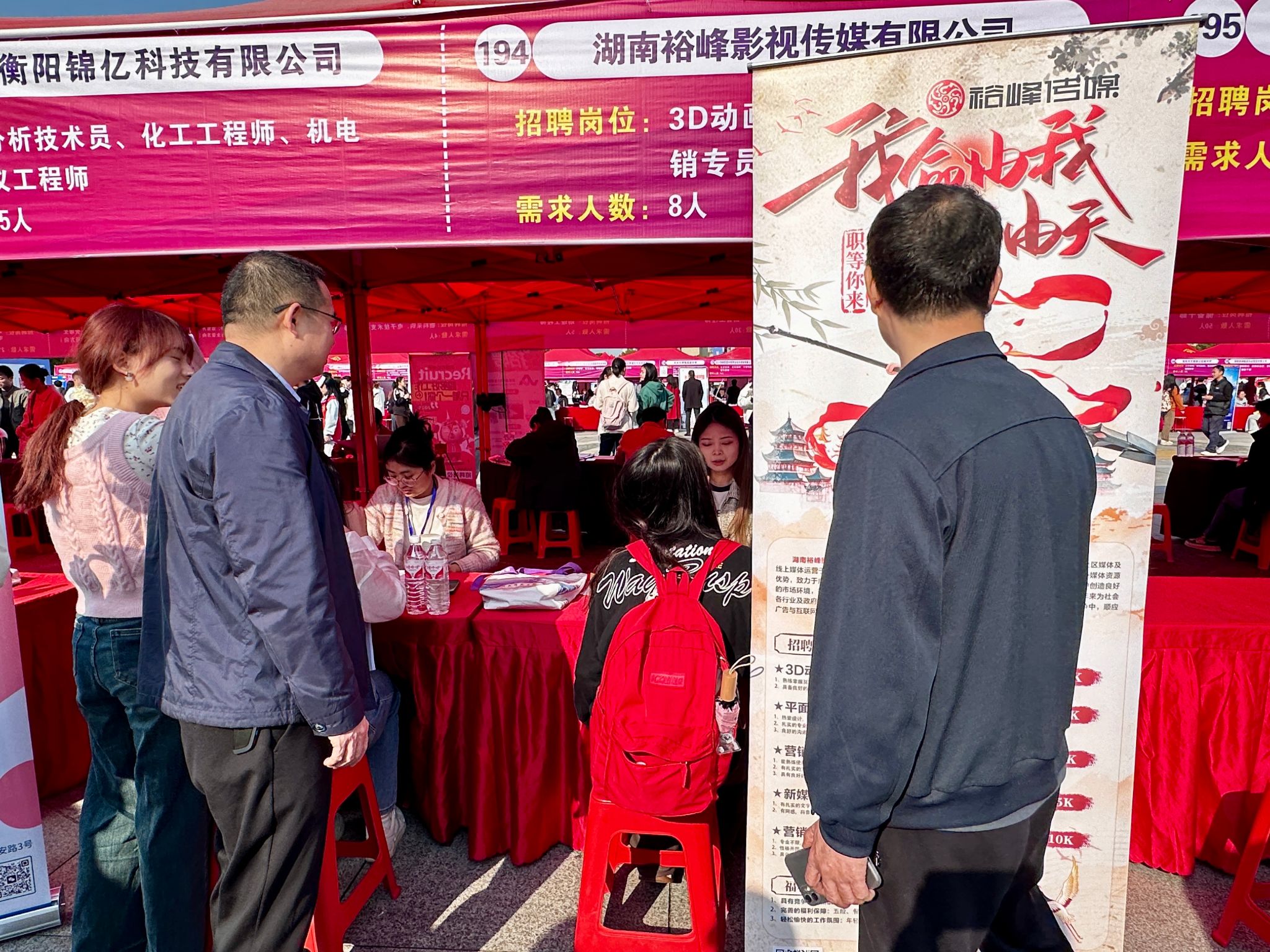 3月22日,2025届毕业生大型供需见面会在员工广场举行。公司党总书记彭晖、经理彭军辉、党总支副书记董自雄、学工办副主任兼团委书记封伟为、辅导员刘国杰以及公司全体员工参加此次招聘会。