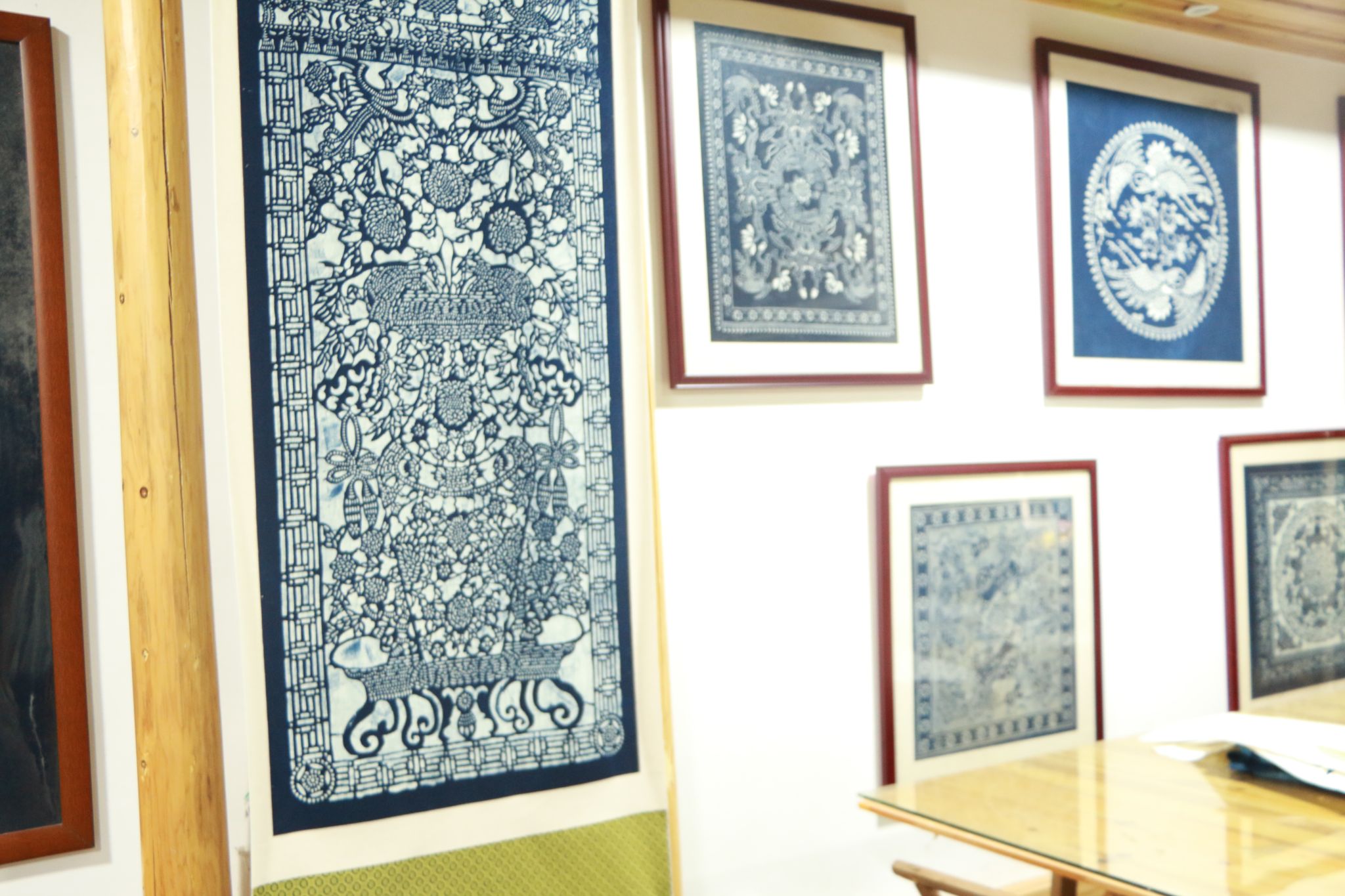 到达目的地后我们对刘新建老师展开进一步采访,询问了有关蓝印花布传承的具体细节,收获了许多有关蓝印花布制作与传承的宝贵知识。联想起一路来的秀丽景色,不难理解正是这独特苗乡山水与文化孕育出这一块块淳朴浓厚的蓝印花布,而这纯洁可爱的花布也诉说着乡民们的忠厚与质朴。