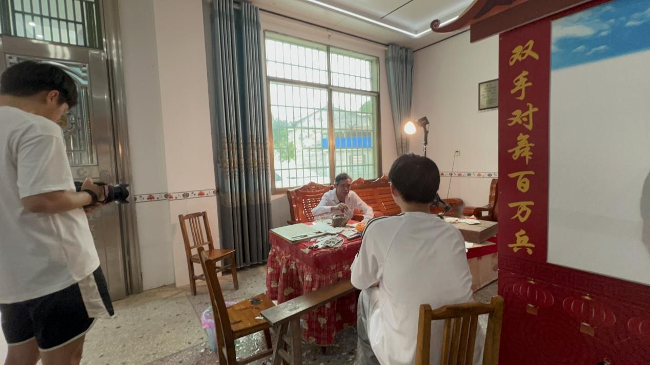怀揣着对非遗文化的热忱,我们迎着晨雾踏上了衡山之旅。山路蜿蜒,小汽车颠簸着穿梭在层峦叠嶂间,窗外青瓦白墙的村落不时掠过。然而,当我们按照导航抵达衡山县后,却发现理想与现实间横亘着一道难题——由于口音问题,加上传承人年纪大不会使用智能手机,造成沟通不便,导致我们前往具体采访地点非常困难。我们只有不停地询问当地人来寻找传承人身处何方,最终我们在不懈的努力下,成功地在衡山县福田村找到了他。