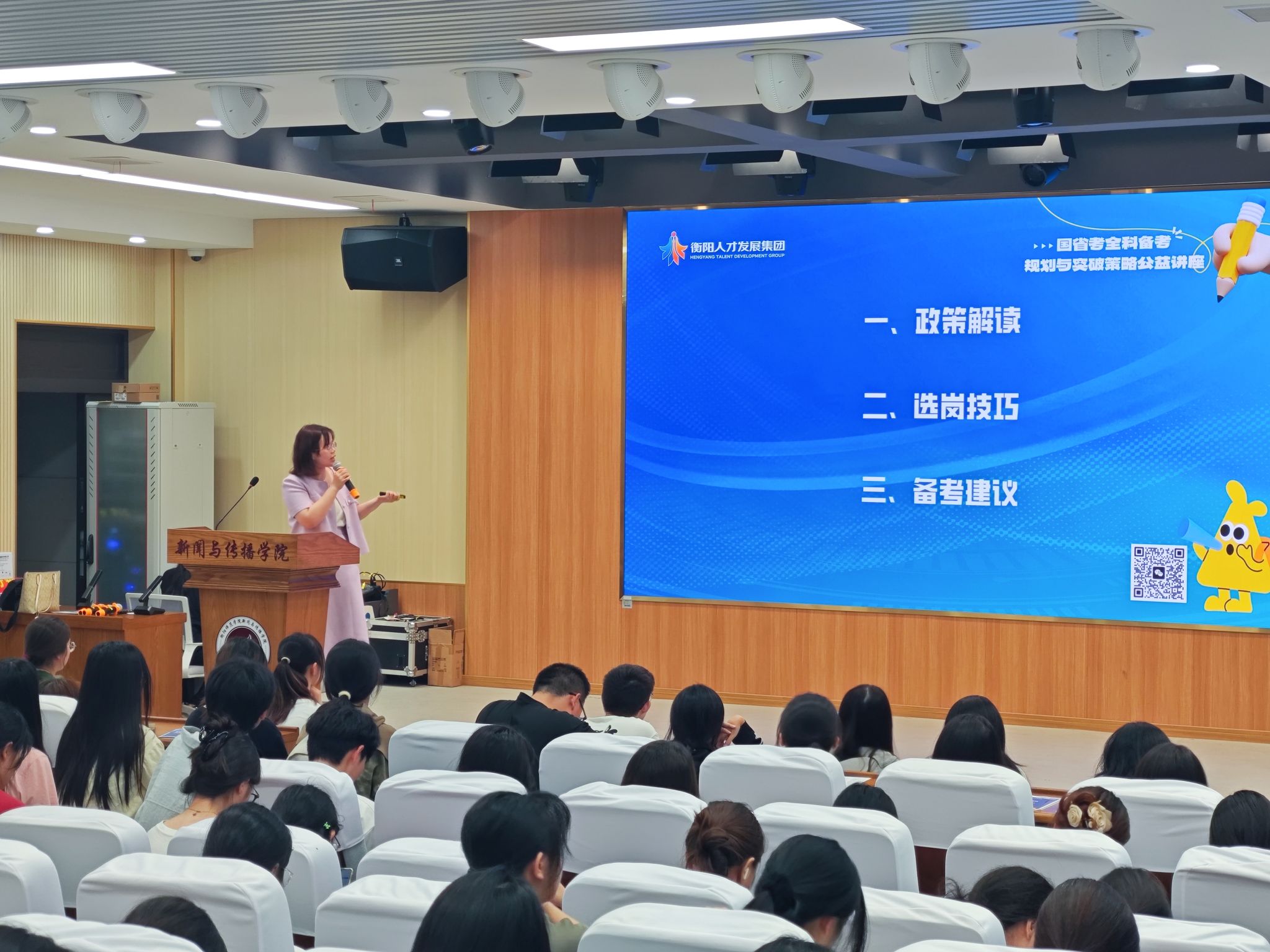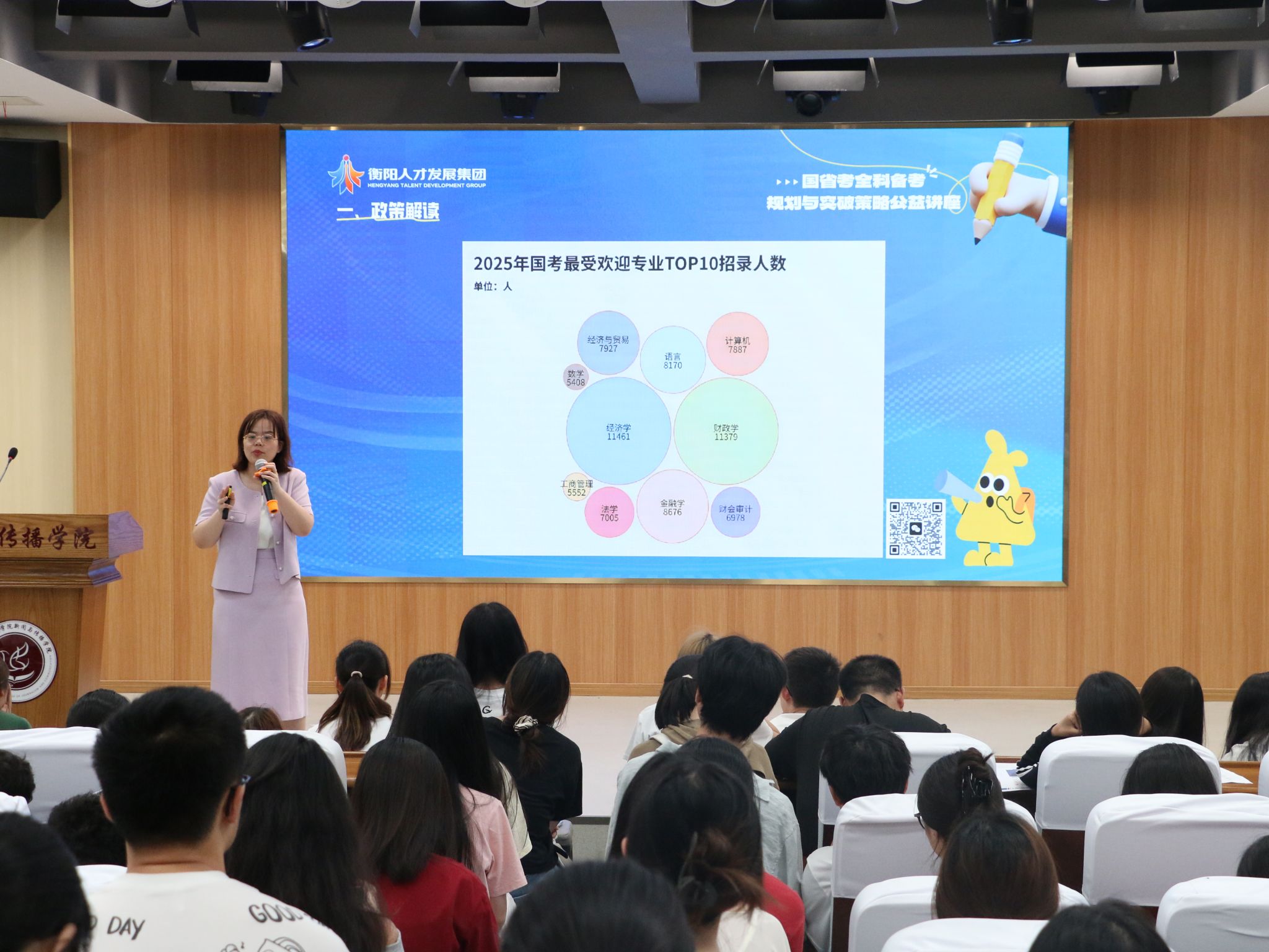 为帮助同学们更好地了解考公政策及策略,2025年5月26日,tyc33455cc太阳集团特于文智楼107演播厅举办公考讲座。公司邀请了衡阳市人才发展集团公考中心的罗晴主任和王老师为同学们进行考公分享。