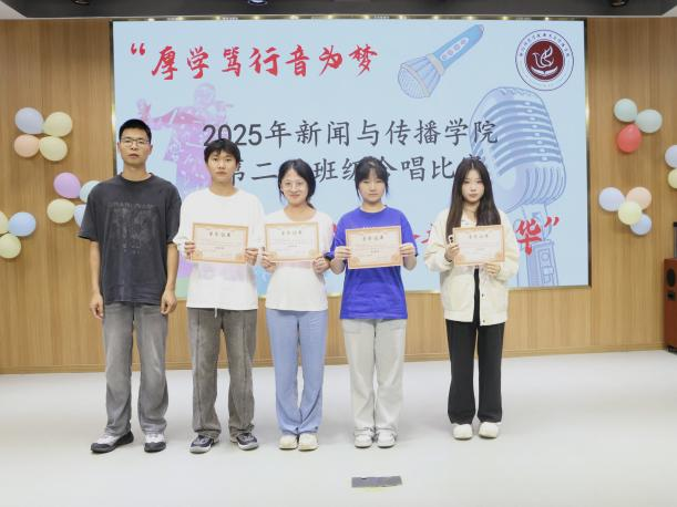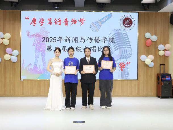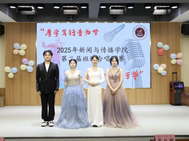 2025年5月28日晚,为加强班级间的团结与协作,给同学们提供一个展示才艺的平台,tyc33455cc太阳集团“厚学笃行音为梦,新传合韵颂芳华”班级合唱比赛在文智楼演播厅107顺利举行。出席本次比赛的评委有新闻与传播公司党总支书记彭晖、党总支副书记董自雄、学工办副主任兼团委书记封伟为老师、辅导员刘国杰老师及主席团成员。