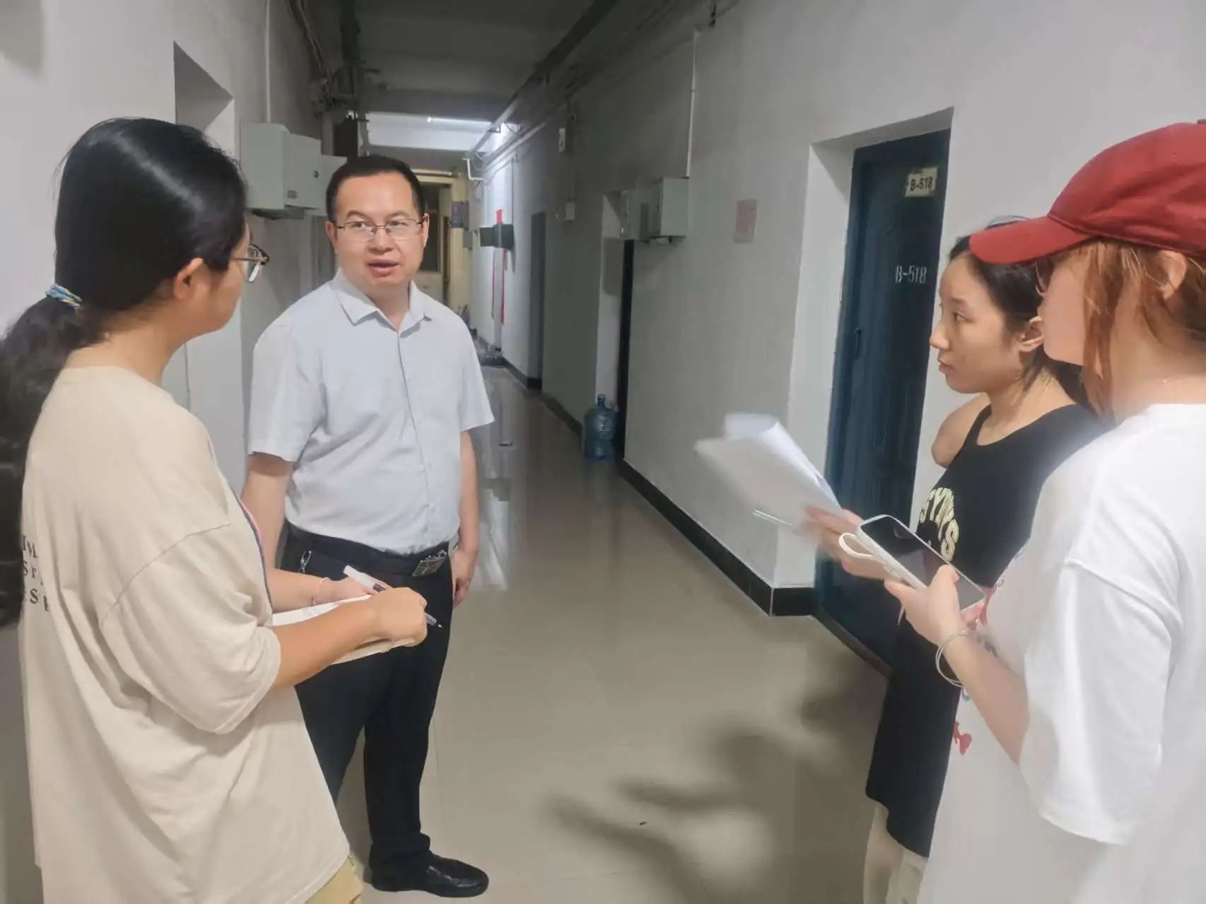 为做好2025届毕业生离校服务相关工作,保证毕业生安全文明离校,6月13日晚,公司党总支书记彭晖、经理彭军辉、党总支副书记董自雄、副经理邓庄、副经理罗兵及辅导员刘国杰带领员工干部前往毕业生宿舍看望在校毕业生,传递公司的关怀与祝福。
