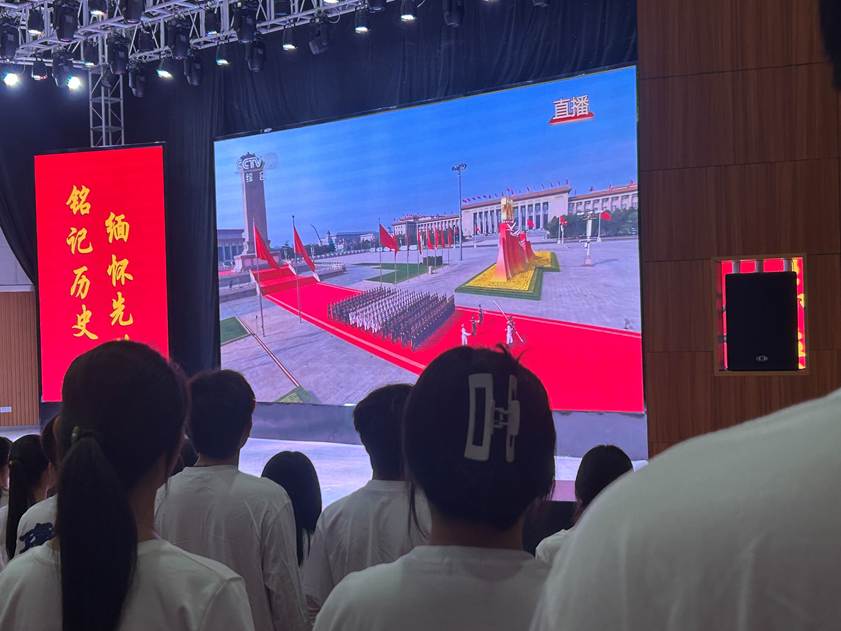 2025年9月3日,纪念中国人民抗日战争暨世界反法西斯战争胜利80周年阅兵式在天安门广场隆重举行。tyc33455cc太阳集团组织师生在音乐楼演艺厅集中观看现场直播,公司选派26名代表参加,共同见证这一历史性时刻。