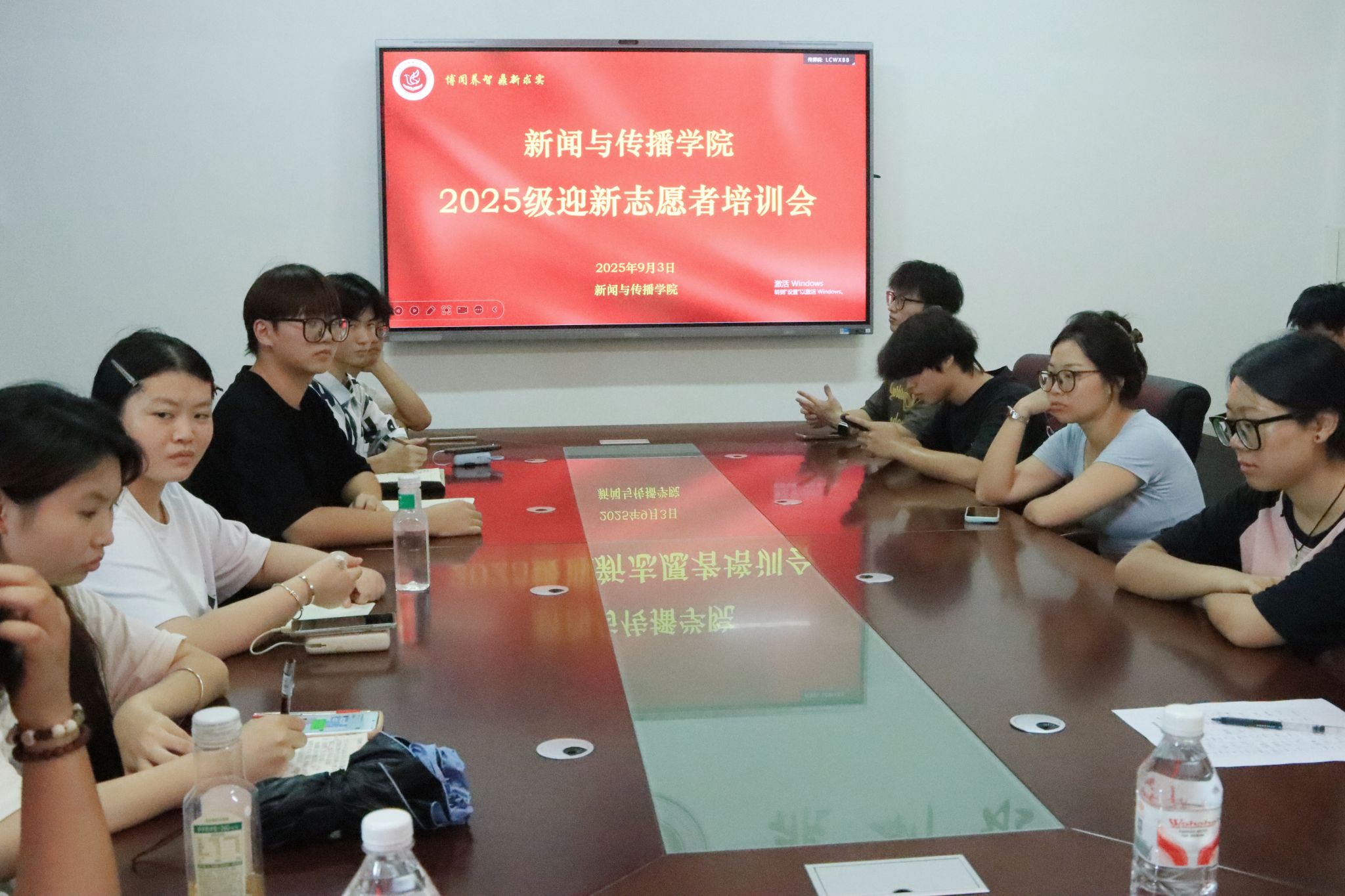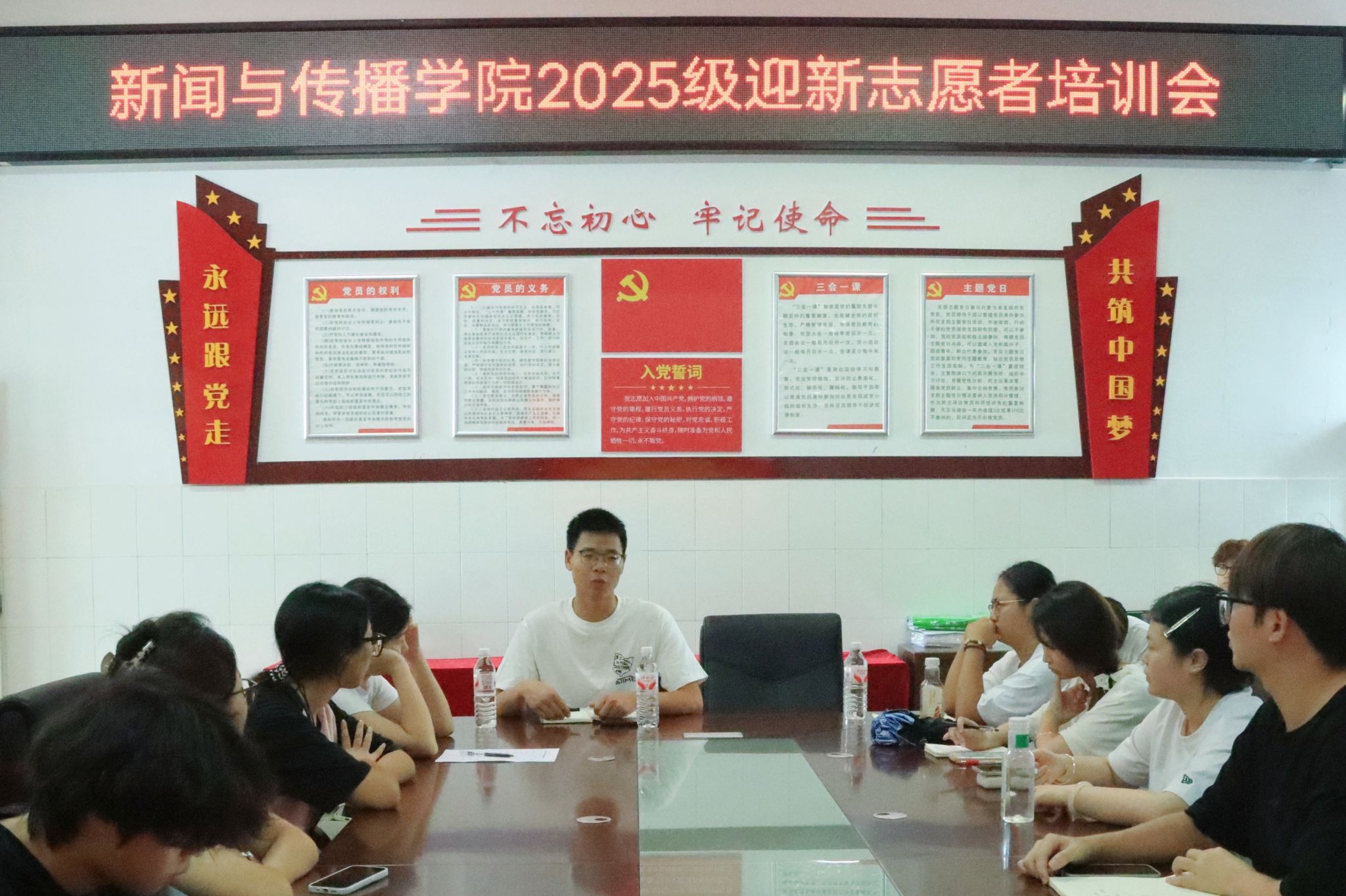 2025年9月3日中午,tyc33455cc太阳集团在仁智楼A510会议室召开2025级班助及志愿者培训会。辅导员刘国杰、第二十四届团学分会主席团成员、2025级班助及志愿者参加会议。