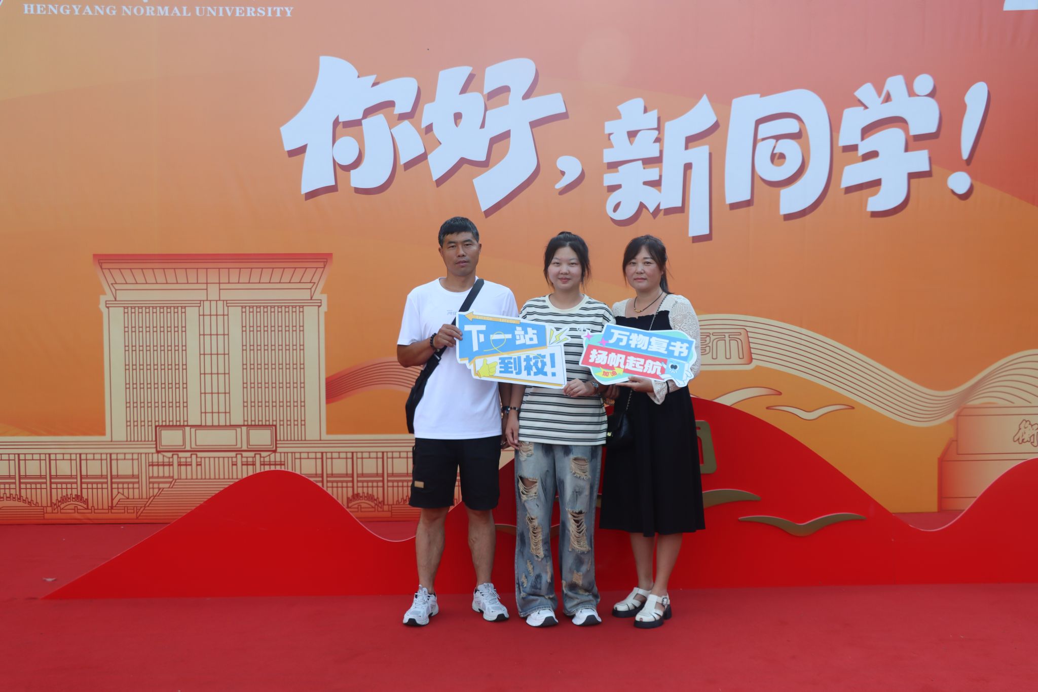 新生和家长们完成入学事宜之后,纷纷在打卡点与志愿者合影,记录下这成为“新传人”的第一份感动。