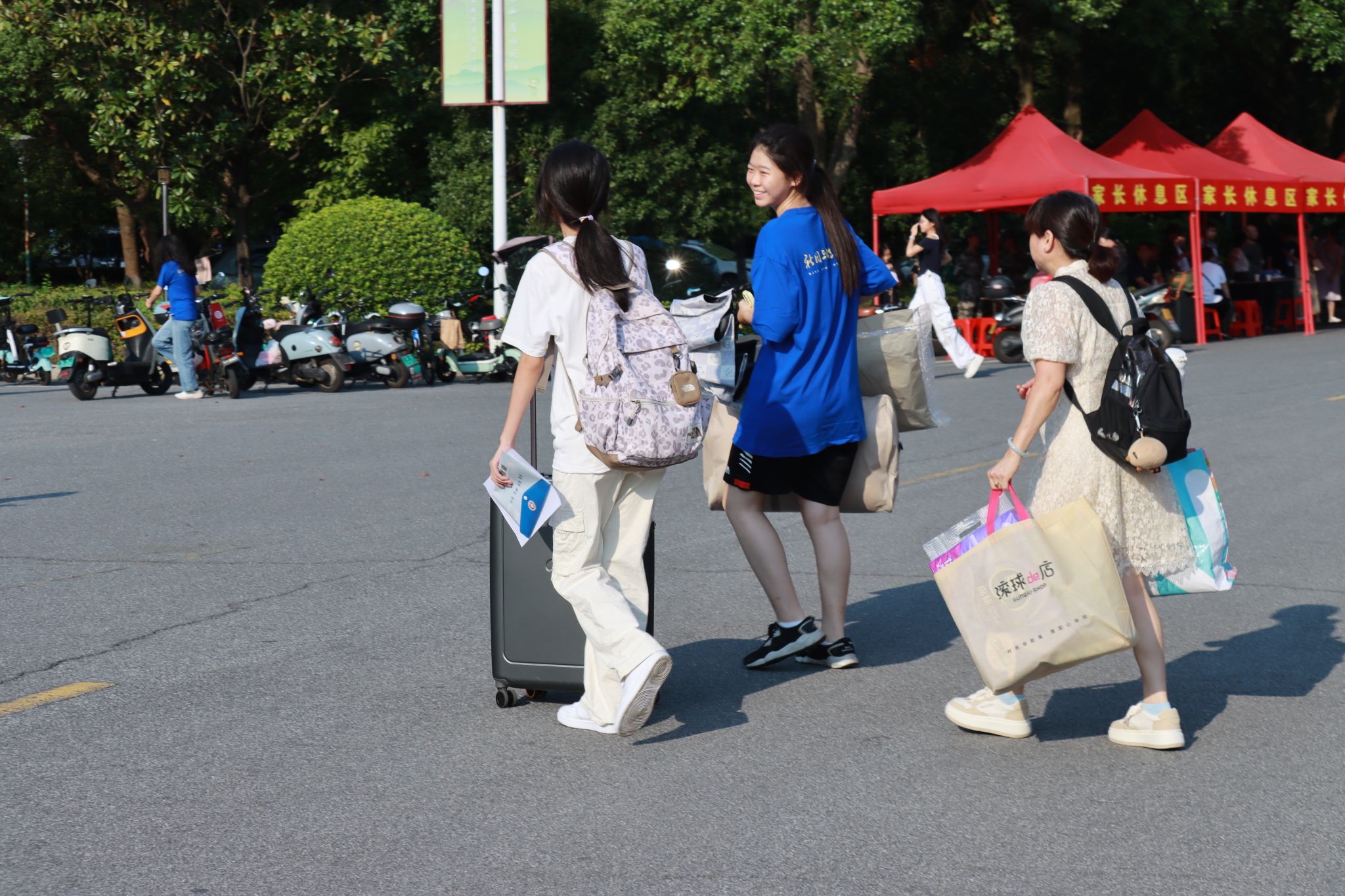 志愿者们为新生们搬运行李