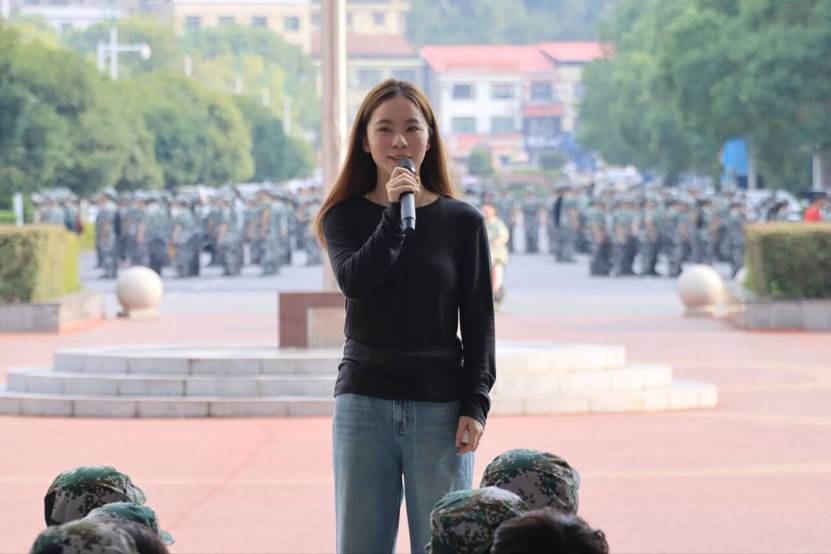2025级网络与新媒体2班班助林芯妍讲话中