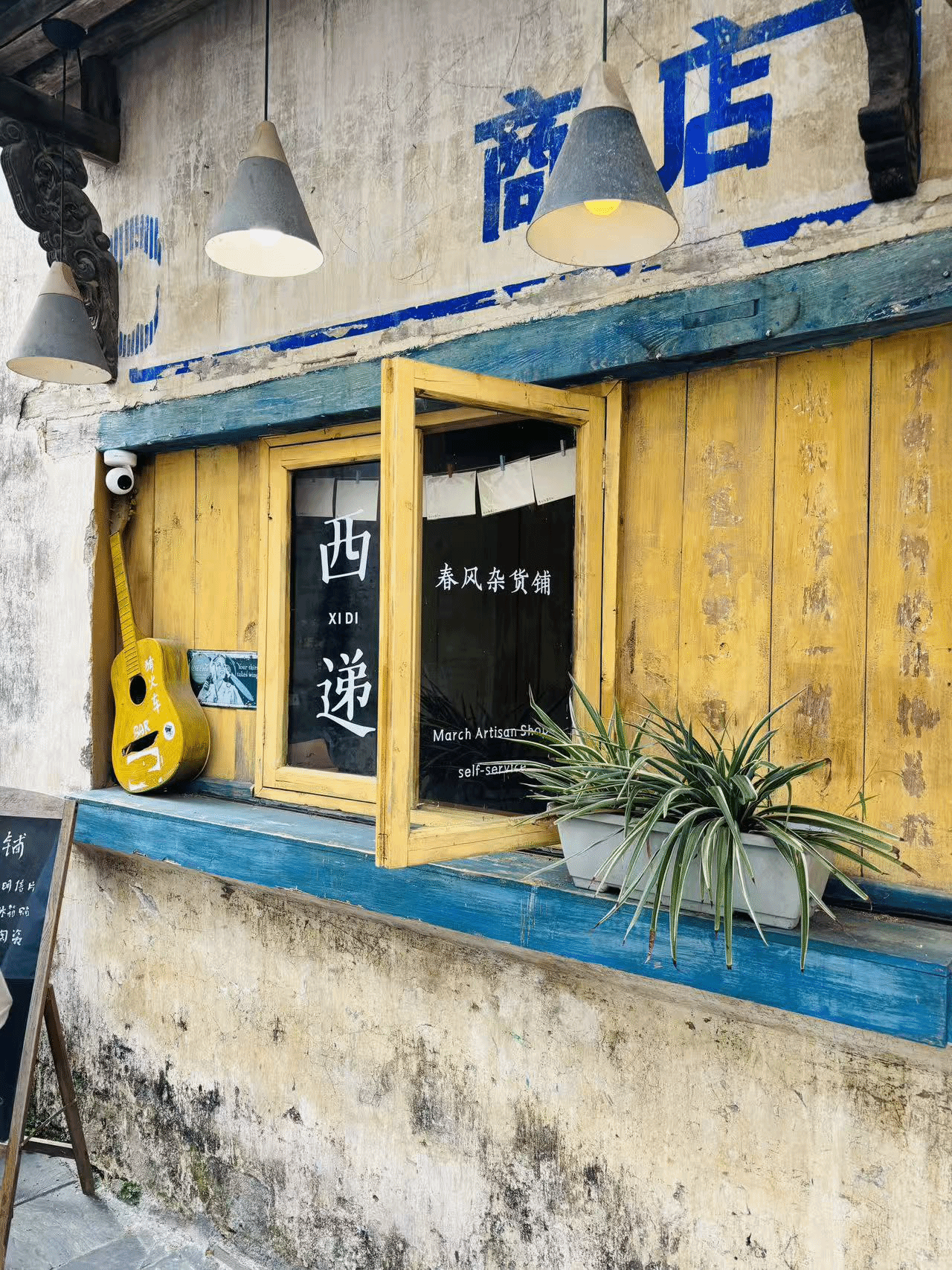 我们踏着晨露走向西递,远山与村落浸在淡蓝色的雾霭中,我们穿过窄巷,寻到那位刻字的老先生。他坐在木凳上,将岁月与故事一刀一刀刻进木纹里。他娓娓道来刻字的源流与变迁,也分享天南地北的旅人留下的言语与目光。那些已完成的刻字作品静静陈列,像时间的信物。随后,我们静静看他现场运刀,木屑轻扬,一笔一画渐次浮现。