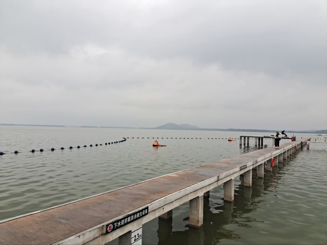 从凌波门走出,东湖便撞入眼帘。雨雾像层轻薄白纱,将湖面蒙得柔柔软软,远处的岸线、游船都晕成了淡墨色轮廓。风掠过水面,带起细碎涟漪,雨珠砸在湖面上,绽开一圈圈转瞬即逝的小水花,倒比晴日的开阔多了几分朦胧的温柔。