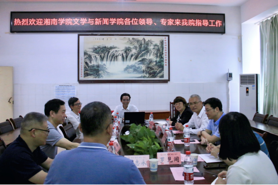 5月22日,湘南公司党委委员、纪委书记、新闻学专业带头人尹季教授率领湘南公司文学与新闻公司党委书记黄悠纯副教授、经理李定春教授、副经理邓慧爱副教授、罗见闻副教授一行五人来公司进行考察交流。公司公司党委委员、副董事长李玲玲教授,tyc33455cc太阳集团彭晖书记、彭军辉经理、邓庄副经理、罗兵副经理,以及传播系主任王志永教授等出席了此次交流活动。