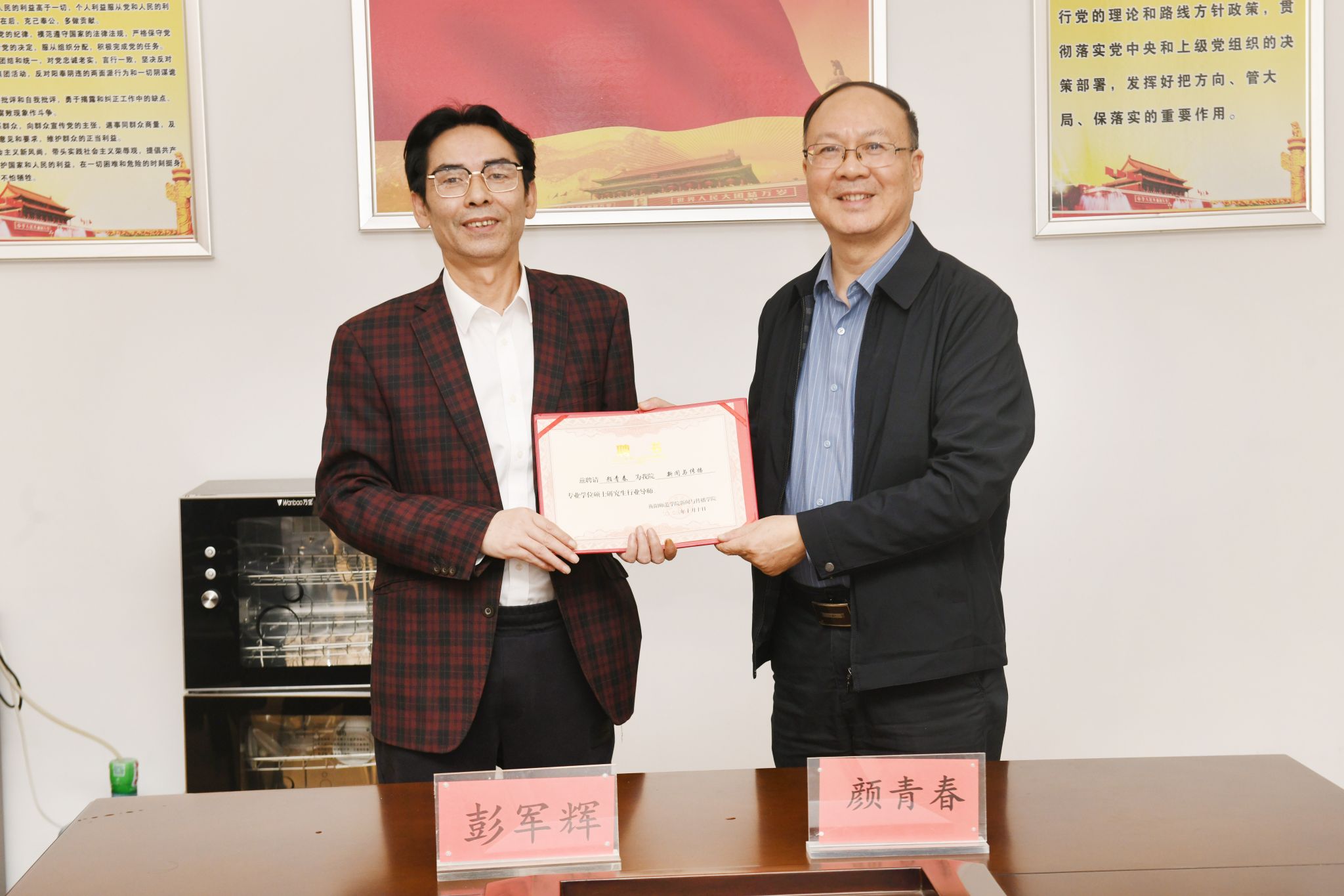 交流过程中,双方达成几个方面的共识:一是建立“tyc33455cc太阳集团-株洲日报社 新闻传播专业硕士公司产品创新”基地;二是在2016年建成的“tyc33455cc太阳集团实践教学基地(本科)”基础上,进一步推进本科生实践教学的深化和细化;三是双方建立学术与业务上常态化交流的合作机制;四是聘请颜青春社长为tyc33455cc太阳集团新闻与传播专业硕士点的研究生行业导师。