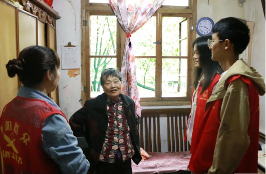 清扫完屋内卫生后,志愿者们开始询问老人的家庭情况与身体状况,陪老人聊家常。老人对于志愿者们的到来感到十分开心,志愿者临走时,老人还向志愿者们表示感谢。