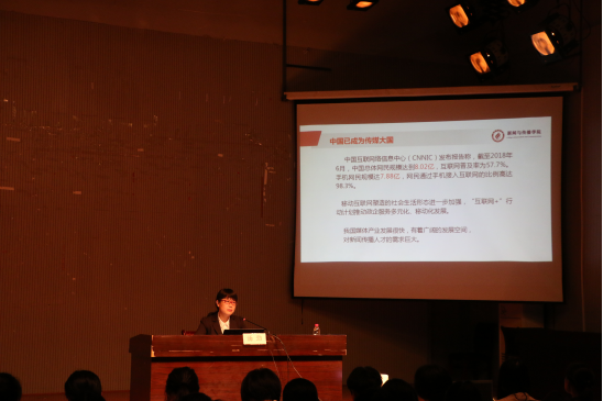 汤劲经理立足于大数据,向同学们分析了当代中国传媒业发展现状及传媒人才的就业前景问题。同时,她从学科与专业、公司概况、办学定位与课程设置、办学条件与特色、教学质量与就业、方法及要求六个方面向2018级新生介绍了公司的基本情况及发展前景。