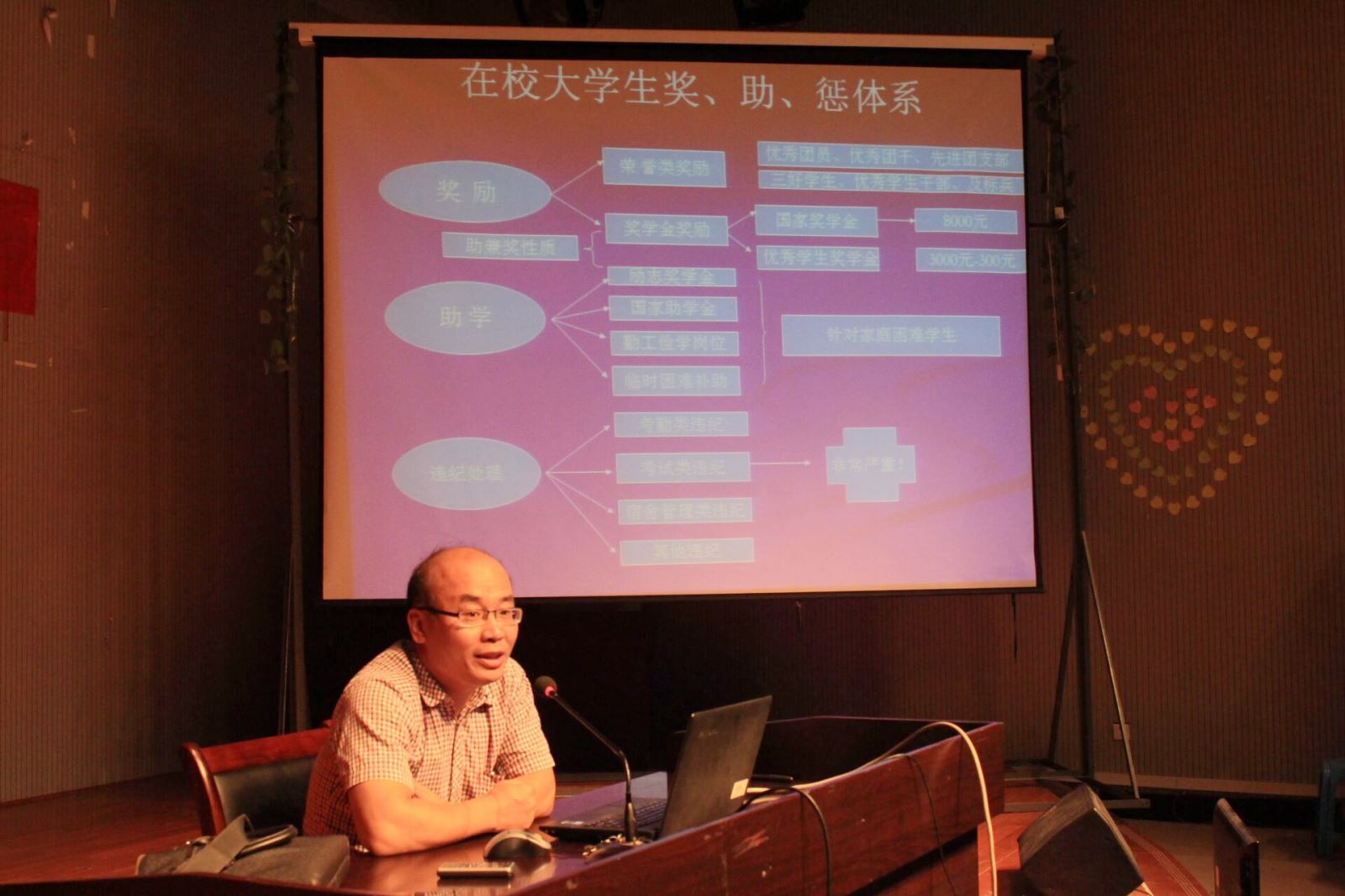 座谈会的最后一场上,辅导员资禹剑老师主要介绍了公司的奖、助和违纪处理体系,详细的为大家解释了奖、助、违纪处理之间的关系,并详细介绍了评优评先和危机处分的项目及其基本标准。