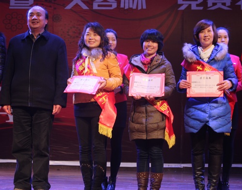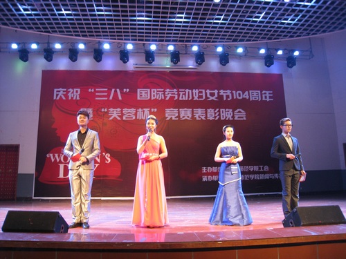 随后,晚会揭开了第一类奖项:“十位魅力女教职工”。在一段获奖者人物介绍视频后,主持人宣布获奖名单,她们分别是:图书馆分工会彭巧燕、外语系分工会贺学耕、美术系分工会赵晶晶、生科系分工会曹丽敏、数计系分工会李浏兰、化材系分工会刘梦琴、新闻系分工会盛芳、计算机分工会王樱、南岳公司分工会尹洁、后勤集团分工会高文。