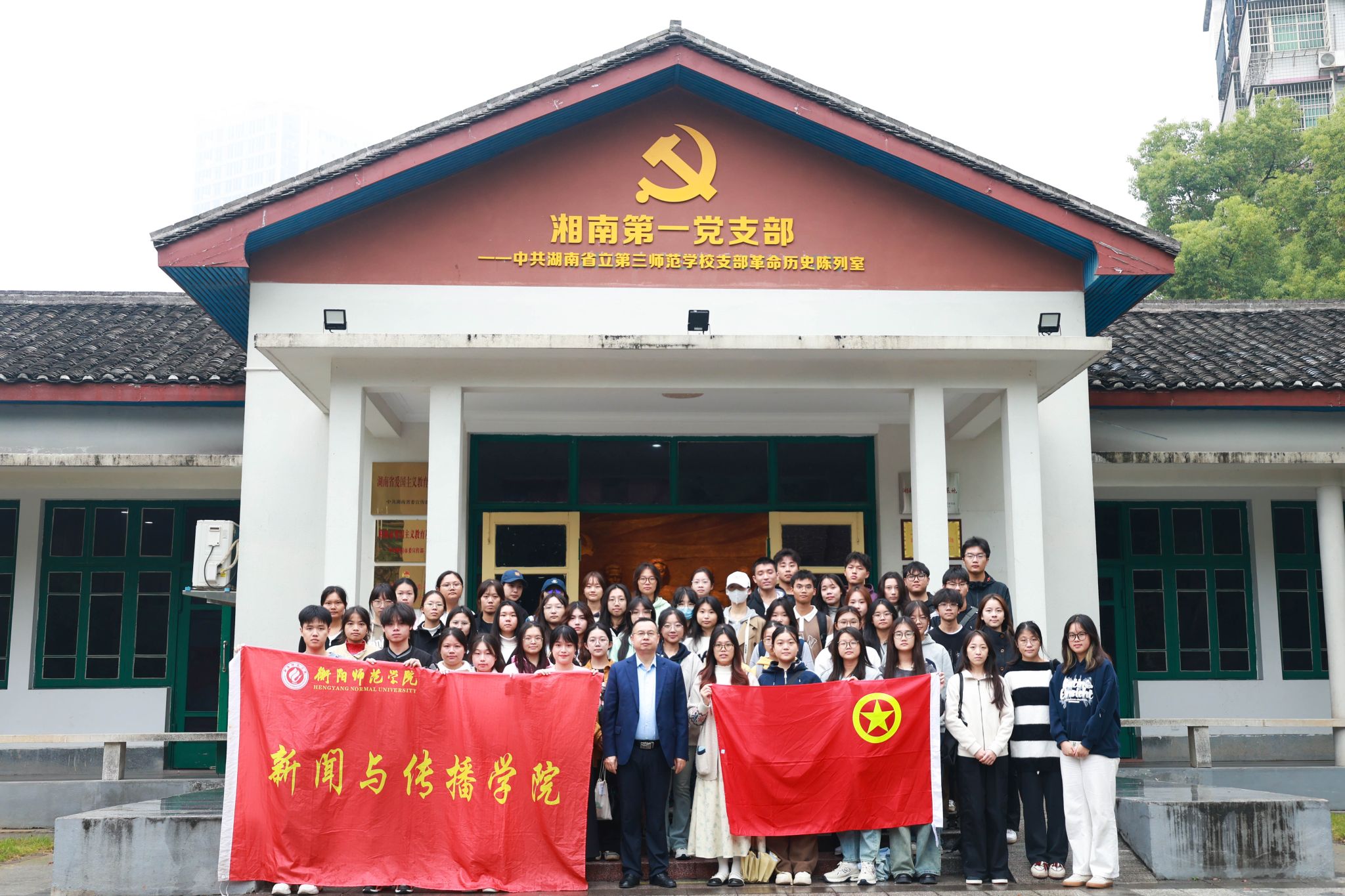 坐落在西校区的湘南第一党支部——中共湖南省立三师支部历史陈列项目,是将1994年建立的“中共湖南省立三师支部”革命历史陈列室(2010年被衡阳市列为首批市级爱国主义教育基地)进行提质改造、重新布展。项目布展面积约380平方米,主要由“序厅”“湘南革命的策源地”“群星璀璨追梦人”三大部分组成,全面展示了湖南省立三师在毛泽东的亲自指导下成立党支部,继而成为湘南革命策源地的光荣历程。是湘南大地的第一面红色旗帜,是衡阳及湘南地区党组织的源头。