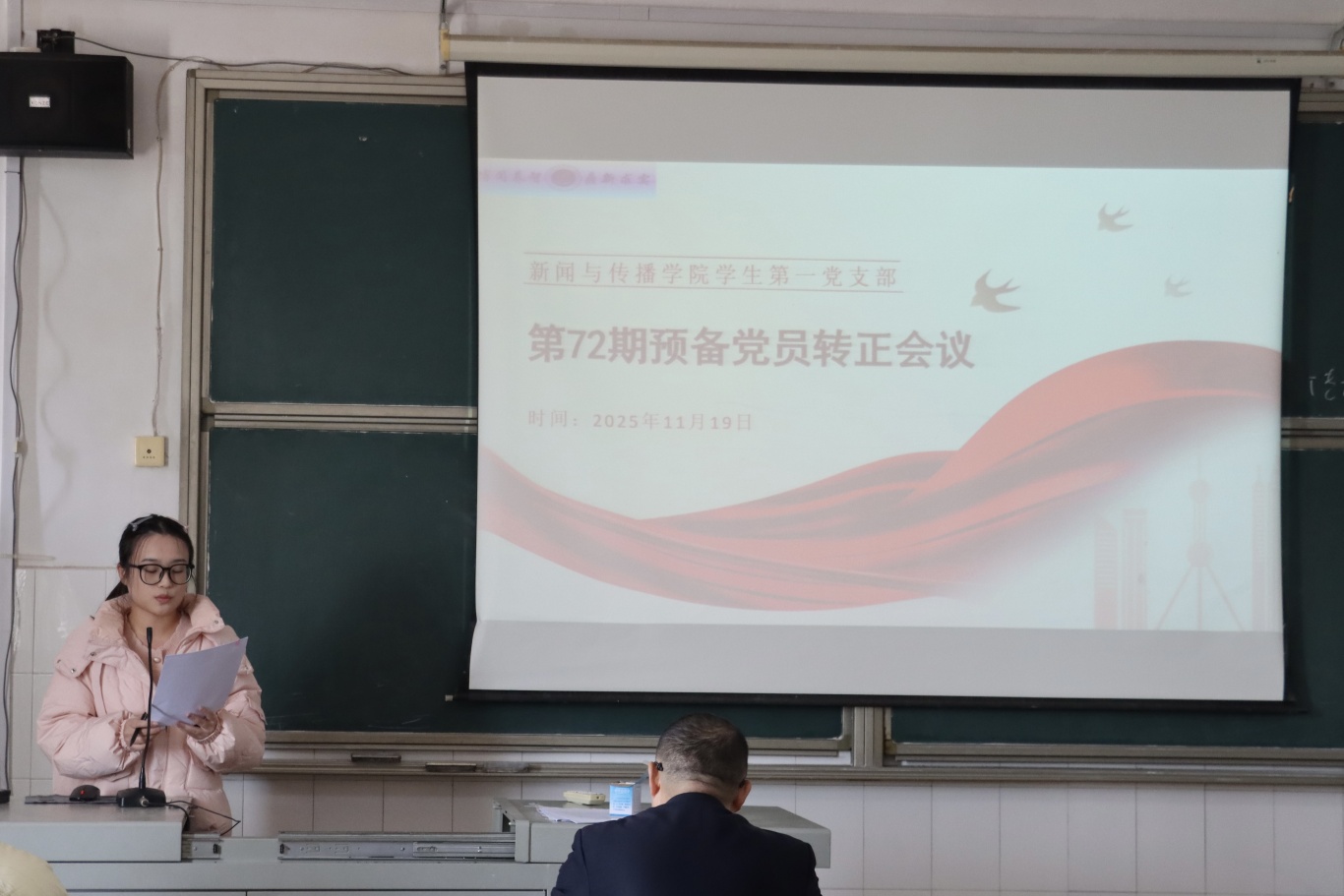 2025年11月19日,公司员工第一党支部于仁智楼A609召开预备党员转正会议。党总支书记彭晖、党总支副书记董自雄、员工第一党支部书记刘国杰出席会议,员工第一党支部组织委员唐虹主持会议。刘国杰老师宣读预备党员转正名单。7名预备党员汇报了预备期内的基本情况。入党介绍人就各位同志在预备期的表现向支部大会作了介绍与评价,并同意其按期转正。
