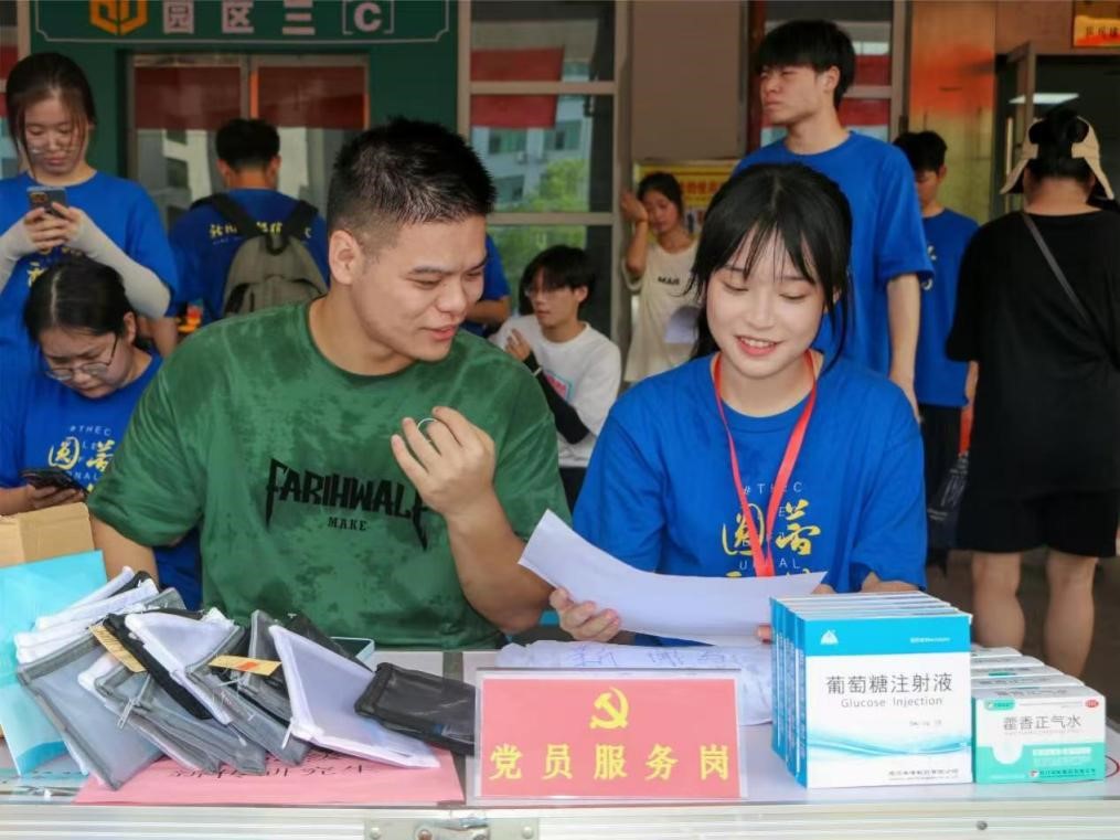 新闻与传播公司党总支书记彭晖、经理彭军辉、党总支副书记董自雄、学工办副主任兼团委书记封伟为亲临现场,对志愿者们的辛勤付出表示高度赞扬,并鼓励他们以最饱满的热情服务新生,让每一位新生都能感受到家的温暖。